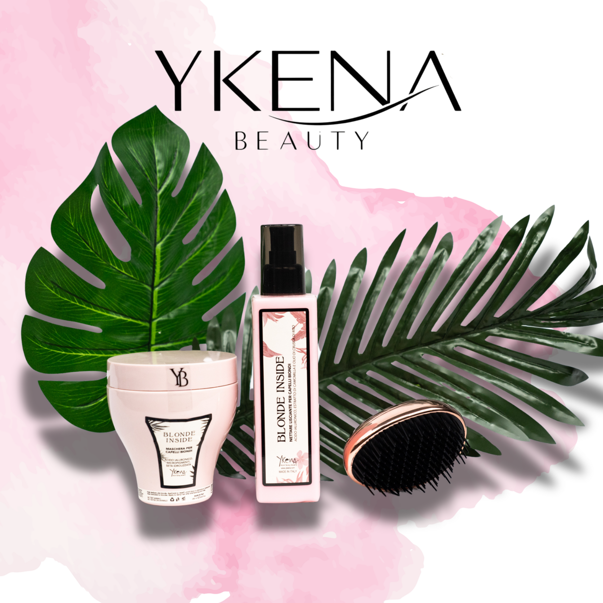The Blonde INSIDE™ mask, rich in nutrients, gives your hair deep hydration, softness and protection. The Smoothing Nectar, with its light formula, disciplines the hair, making it silky and shiny, ready for any style. And the Pink Palm Brush is ideal for stimulating the scalp and evenly distributing nutrients, ensuring healthy and strong hair.